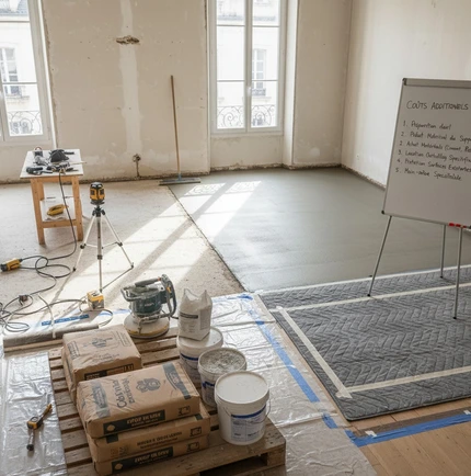 Au-delà du devis standard, il faut compter les frais pour la préparation du support, le matériel spécifique, et la protection du sol avec cire ou résine. Ces frais varient selon l’état initial de la surface et le type de finition choisi.