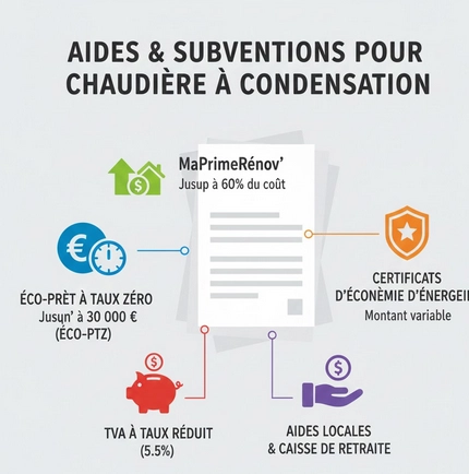 Selon l’ETAS de la chaudière et la qualification de l’installateur, vous pouvez bénéficier d’un éco-prêt à taux zéro, de TVA réduite et éventuellement de subventions locales pour réduire le coût de l’installation.