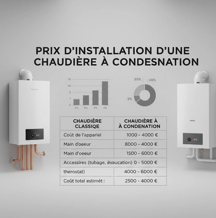 Le coût d’une chaudière à condensation varie selon son format (murale ou au sol) et sa puissance. En moyenne, il faut prévoir un budget incluant l’appareil, la main-d’œuvre et les éventuels raccordements. Votre installateur pourra établir un devis précis adapté à votre logement.
