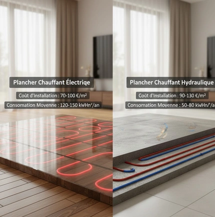 Le choix dépend principalement de votre projet : le plancher électrique est idéal pour des rénovations rapides ou de petites surfaces, tandis que le plancher hydraulique est plus adapté aux grandes surfaces et offre une meilleure rentabilité à long terme grâce à sa faible consommation énergétique.