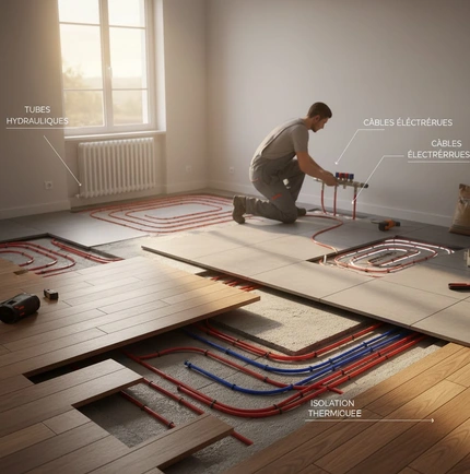 Il existe deux grandes solutions : le chauffage électrique et le chauffage hydraulique. Le modèle électrique se révèle souvent plus simple à poser, idéal pour les rénovations rapides, tandis que le système hydraulique nécessite un calcul précis du réseau de tubes et une installation rigoureuse par un professionnel pour garantir une efficacité optimale.