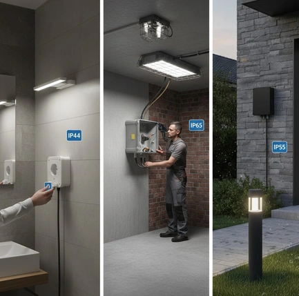 Dans une salle de bain, un garage ou en extérieur, le matériel électrique doit résister à des conditions plus exigeantes. L’humidité et la poussière accélèrent l’usure et peuvent provoquer des défauts d’isolement. Il est donc essentiel de choisir des équipements conçus pour ces environnements, avec une protection adaptée. Par exemple, une prise prévue pour un séjour n’a rien à faire dans une buanderie ou sous un auvent exposé aux intempéries.