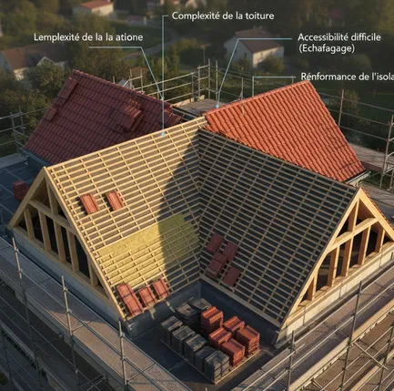 - L’état de la toiture existante : une dépose complète ou des réparations préalables peuvent alourdir la facture.