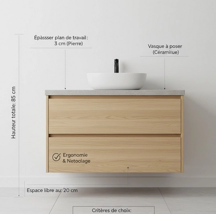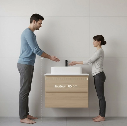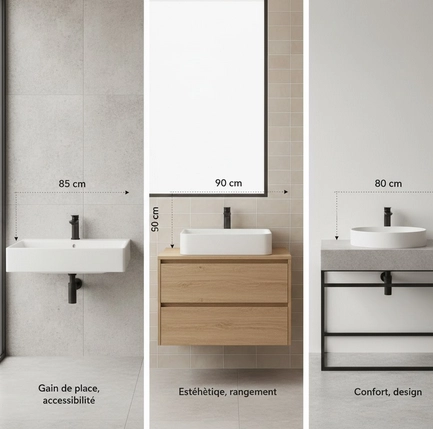 Le type de lavabo et le meuble support jouent un rÎle clé dans la hauteur finale à prévoir.