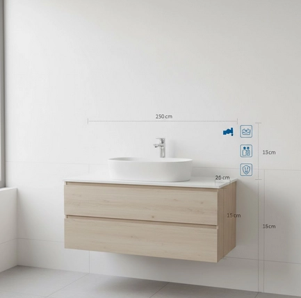 • VĂ©rifiez la cohĂ©rence avec le meuble ou le plan de travail existant afin d’éviter une rupture d’ergonomie, notamment si la salle de bain est utilisĂ©e quotidiennement par plusieurs personnes.