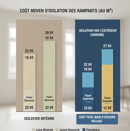 BiosourcésLaine de bois, ChanvreMatériaux naturels, bonne régulation hygrométriqueCoût parfois plus élevé, épaisseur nécessaire importante pour performance optimale