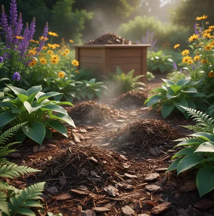 Compostez vos déchets verts et étalez le compost ou le paillage sur vos massifs pour nourrir les plantes et améliorer la structure du sol sans produits chimiques.