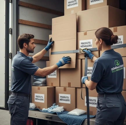 - Identifiez clairement les cartons contenant des produits ménagers afin d’éviter toute confusion et de faciliter leur manipulation lors du chargement.