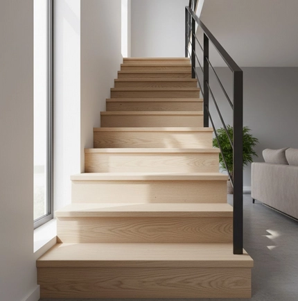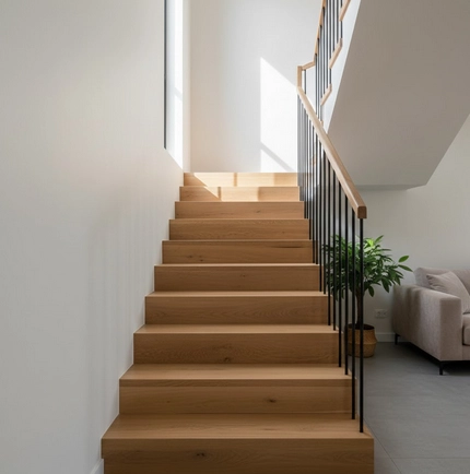 Un escalier droit reste la solution la plus simple et Ă©conomique pour relier deux niveaux dans un intĂ©rieur classique. Sa conception linĂ©aire permet une installation rapide et facilite lâintĂ©gration dans des espaces Ă©troits ou standards, sans nĂ©cessiter de calculs complexes ou de structures supplĂ©mentaires.