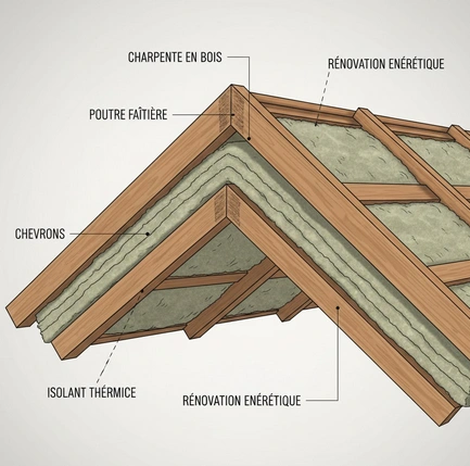 Une charpente saine limite les travaux aux Ă©lĂ©ments visibles. En revanche, des bois fragilisĂ©s ou une structure Ă renforcer impliquent des interventions supplĂ©mentaires, souvent techniques. CĂŽtĂ© confort, une isolation vieillissante peut justifier une reprise complĂšte, notamment lors dâune rĂ©novation globale. Ces ajustements amĂ©liorent durablement les performances du logement, mais ils doivent ĂȘtre anticipĂ©s dĂšs le diagnostic pour Ă©viter les dĂ©passements de budget.